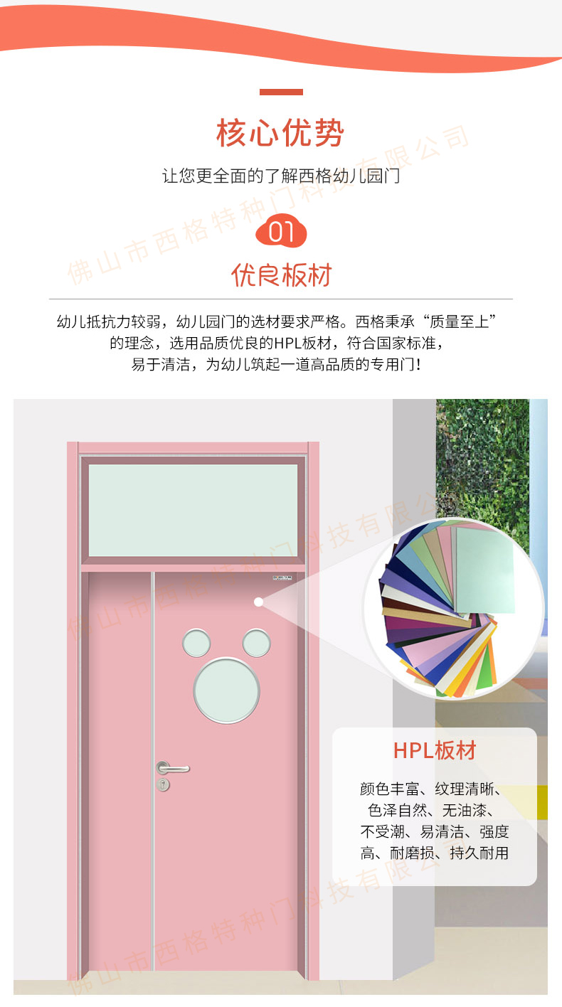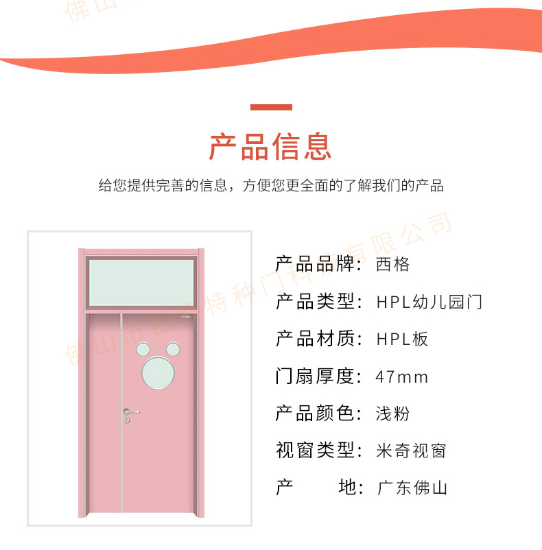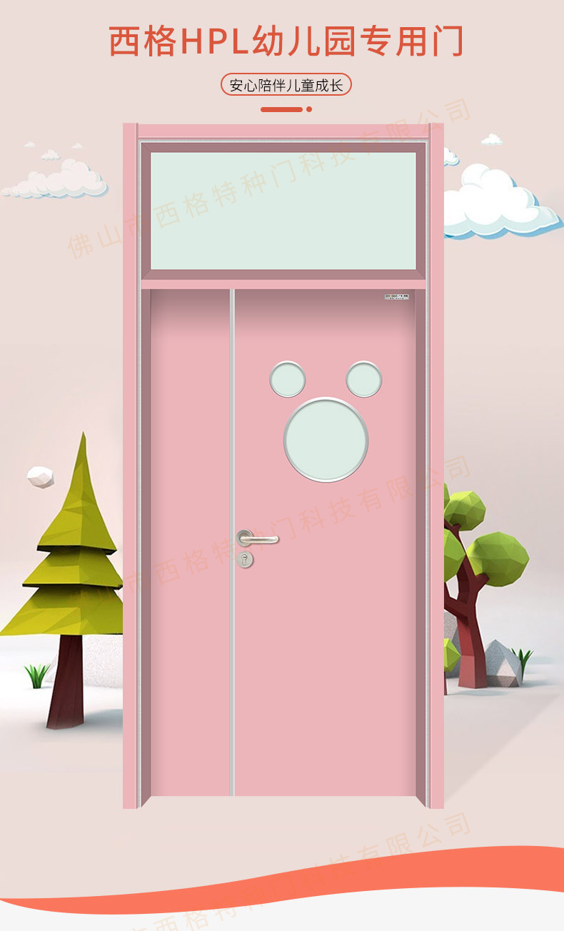 HPL幼儿园子母门-带亮窗-米奇视窗-浅粉