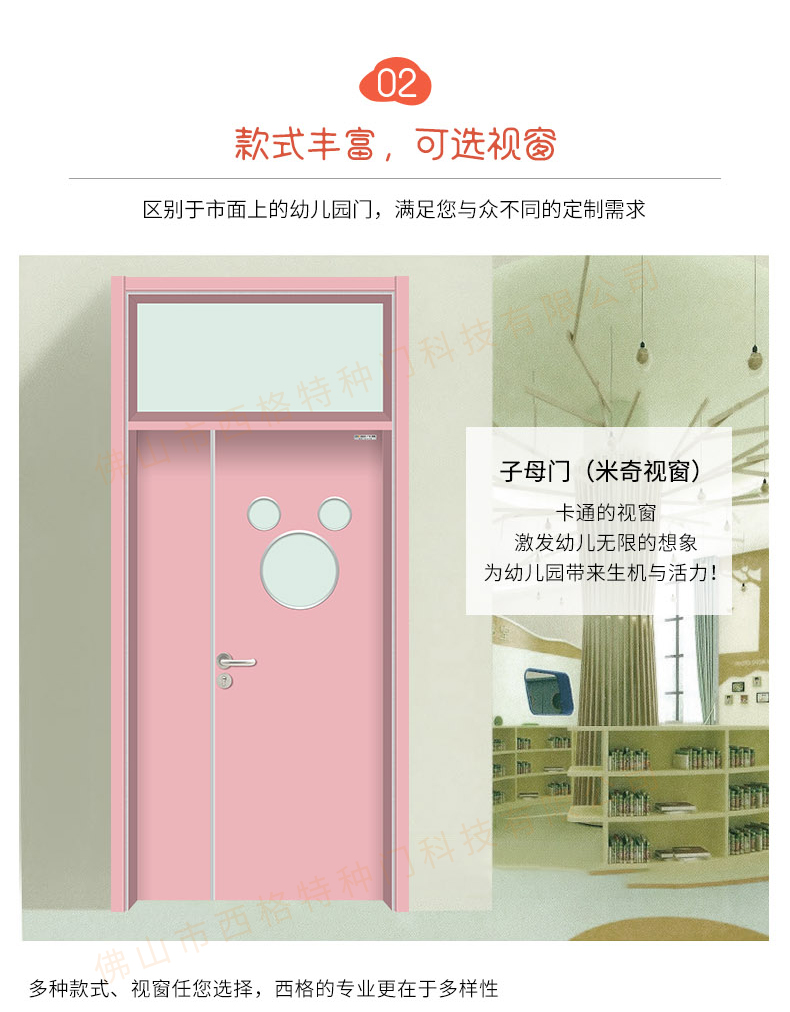 HPL幼儿园子母门-带亮窗-米奇视窗-浅粉